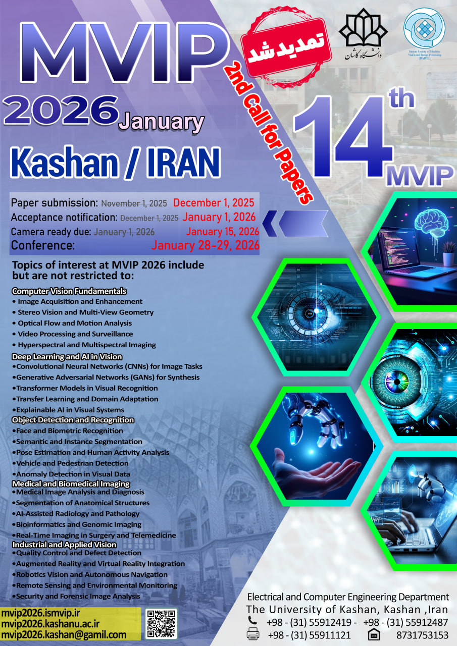 چهاردهمین کنفرانس ملی و چهارمین کنفرانس بین المللی بینایی ماشین و پردازش تصویر ۱۰ آبان ۱۴۰۴ | ۱۳:۴۸ کد : ۲۶۴۷۷ اطلاعیه ها ارسال به دیگران نام شما ایمیل شما ایمیل دریافتکننده ارسال انصراف تعداد بازدید:۱۲۰ چهاردهمین کنفرانس ملی و چهارمین کنفرانس بین المللی بینایی ماشین و پردازش تصویر
