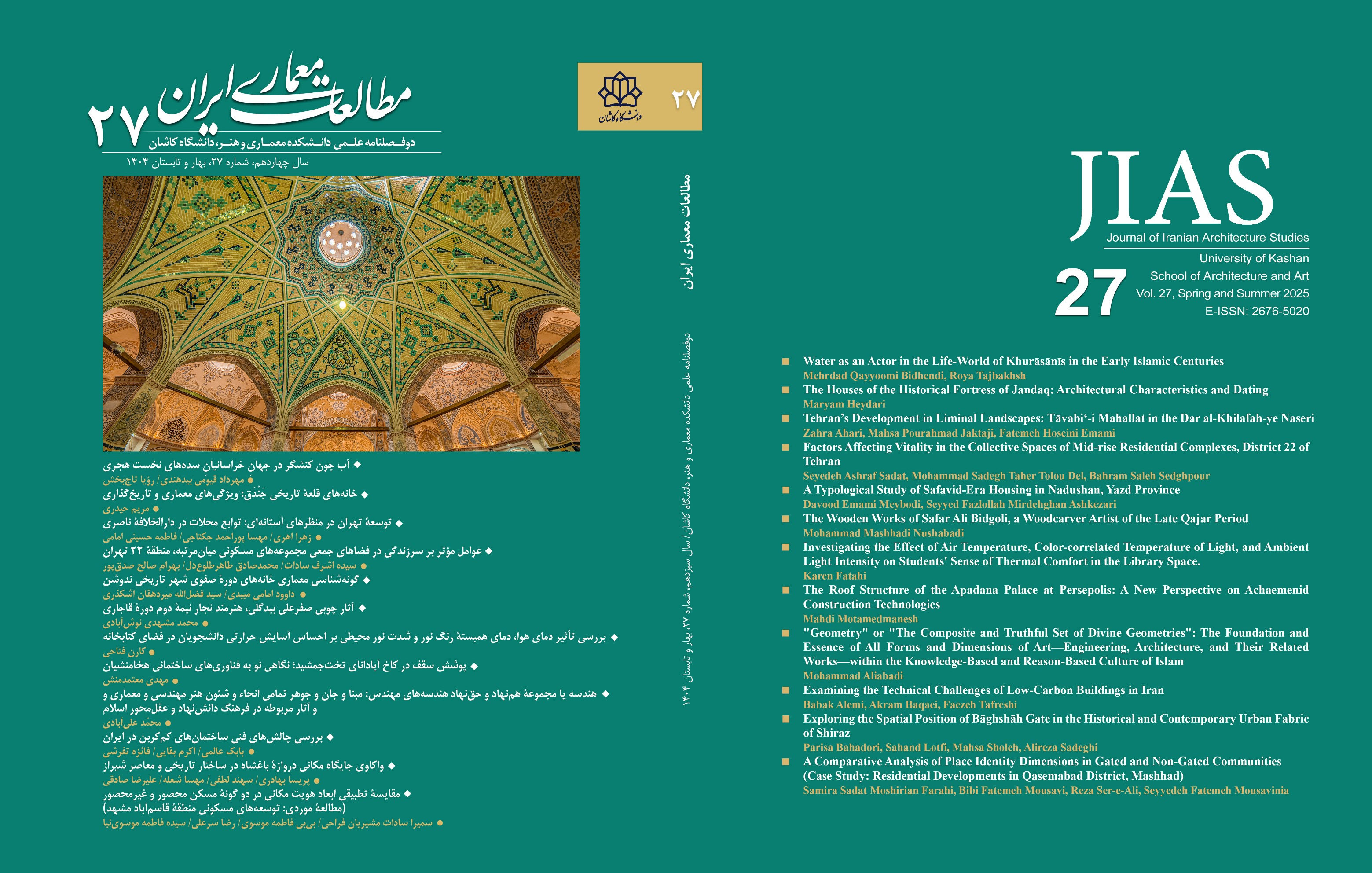 انتشار شماره جدید (شماره 27) مجله علمی مطالعات معماری ایران