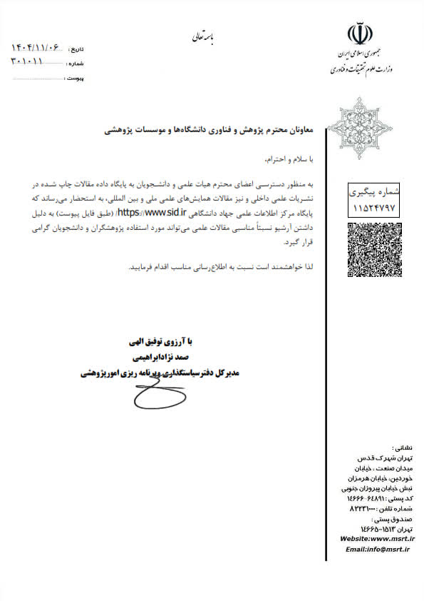 (طبق فایل بیوست) به دلیل داشتن آرشیو نسبتاً مناسبى مقالات علمى مى تواند مورد استفاده پژوهشگران و دانشجویان گرامى قرار گیرد.
